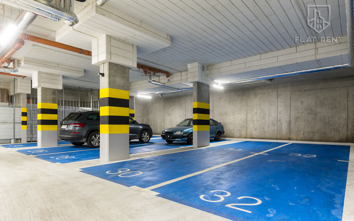 Additionally, the apartment comes with two parking spaces in the underground garage, which is a significant advantage in the city center.