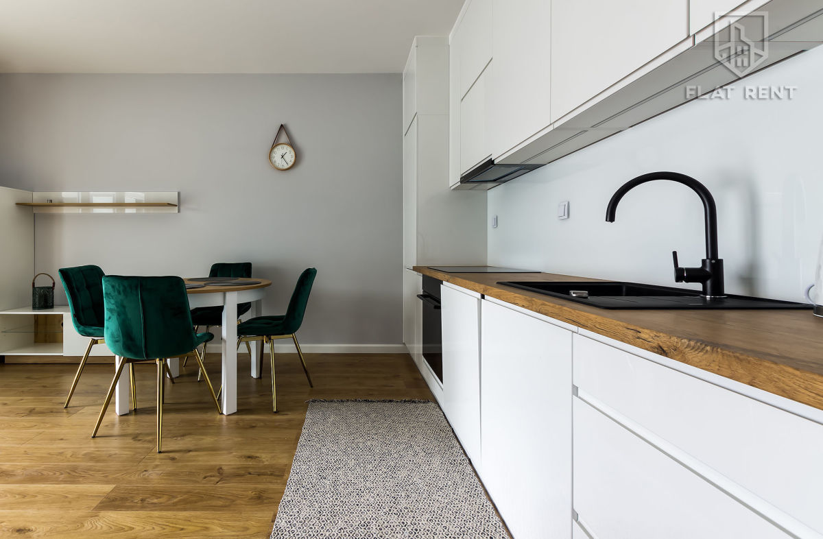 The apartment is located in the very heart of Warsaw’s business district in Mokotów, making it ideal both for people working in the area and for families. In the immediate vicinity there are kindergartens, schools, shops, cafés, pizzerias, restaurants, and medical clinics. For active lifestyle enthusiasts, numerous bicycle paths are available. Additionally, the building offers 24/7 security, and houses a Biedronka, Lidl, and a pharmacy, making everyday shopping extremely convenient. Public transport connections are excellent, with buses, trams, and a metro station nearby.