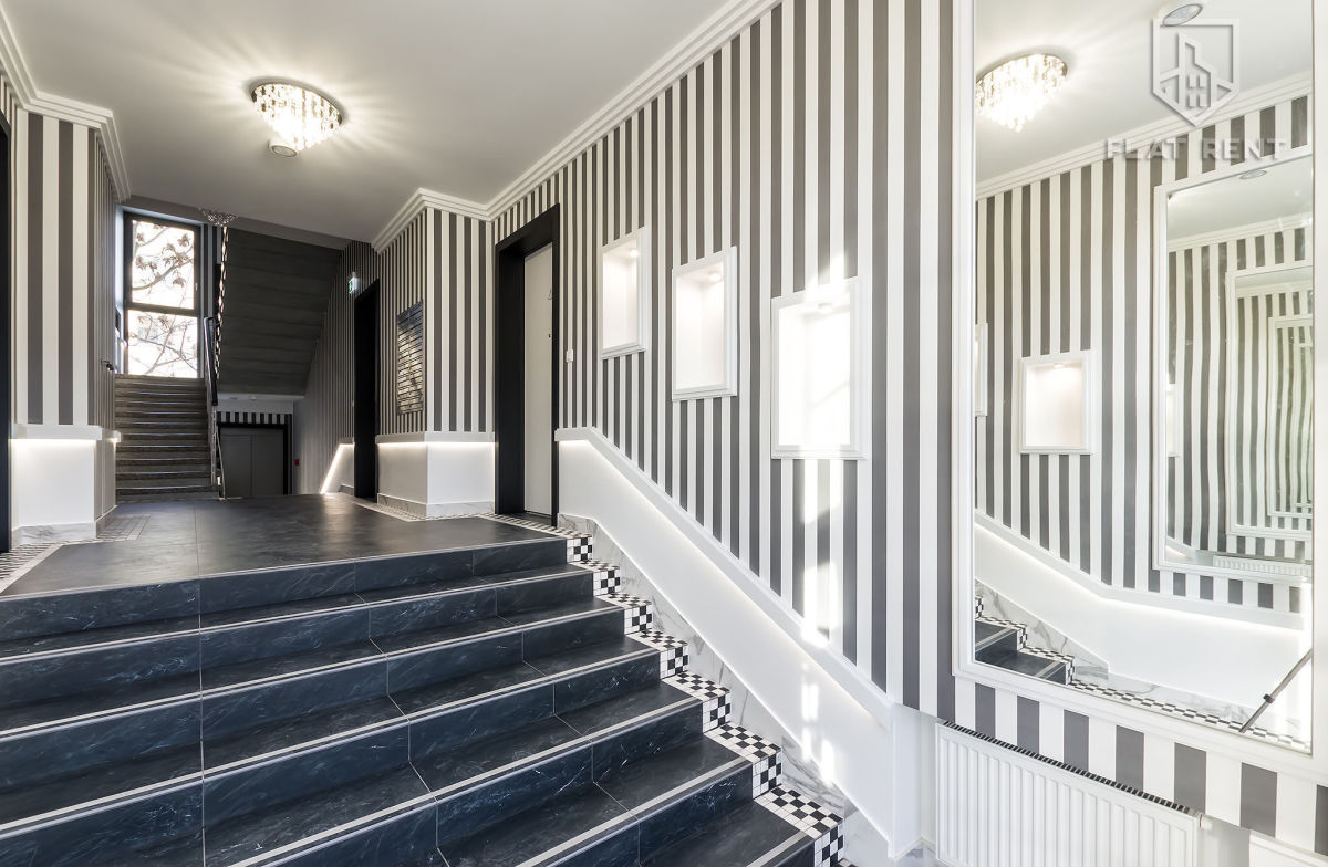 The tenement building is located in Mokotów (10 minutes from the city center), next to Królikarnia Park, on Puławska Street, in close proximity to TVP. The surrounding area offers kindergartens, schools, shops, cafés, and numerous bicycle paths. The building grounds are secluded and provide a sense of privacy.
