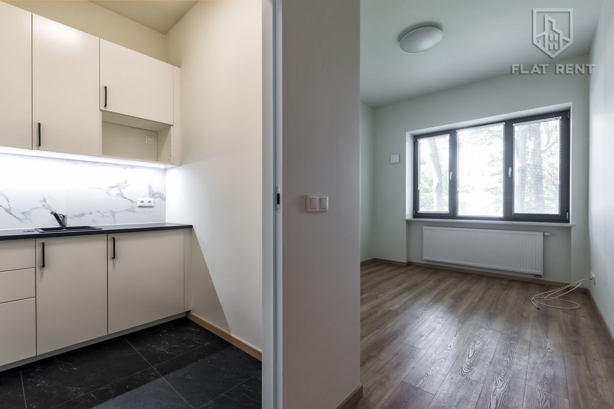 Office premises finished to a very high standard. The bathroom and kitchen are fully equipped. Located on the ground floor of the building with a representative entrance hall, making it easy for clients to find. Possibility to install informational signage.